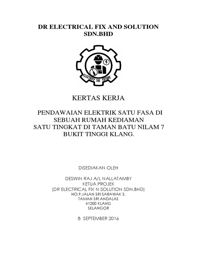 Kertas Kerja Projek Pendawaan Elektrik Satu Fasa Rumah Kediamandocx Pdf